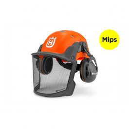 El casco técnico de Husqvarna está equipado con el sistema de seguridad Mips® para cascos forestales. Este casco forestal, resistente pero ligero, cuenta con protección auditiva, visera y cuello. Está diseñado para ser modular, permitiéndote cambiar la visera y la protección auditiva para adaptarse a cualquier condición. La visera se ajusta a tu rostro y ofrece un excelente campo de visión, tanto si estás abajo como en modo de espera, dándote una vista despejada de las copas de los árboles. El casco se ajusta cómodamente para que puedas centrar toda tu atención en tus tareas. Disponible en dos colores para adaptarse a tu estilo y entorno(naranja y gris).. Al mismo tiempo cuenta con ranuras integradas para instalar una luz sobre el casco.